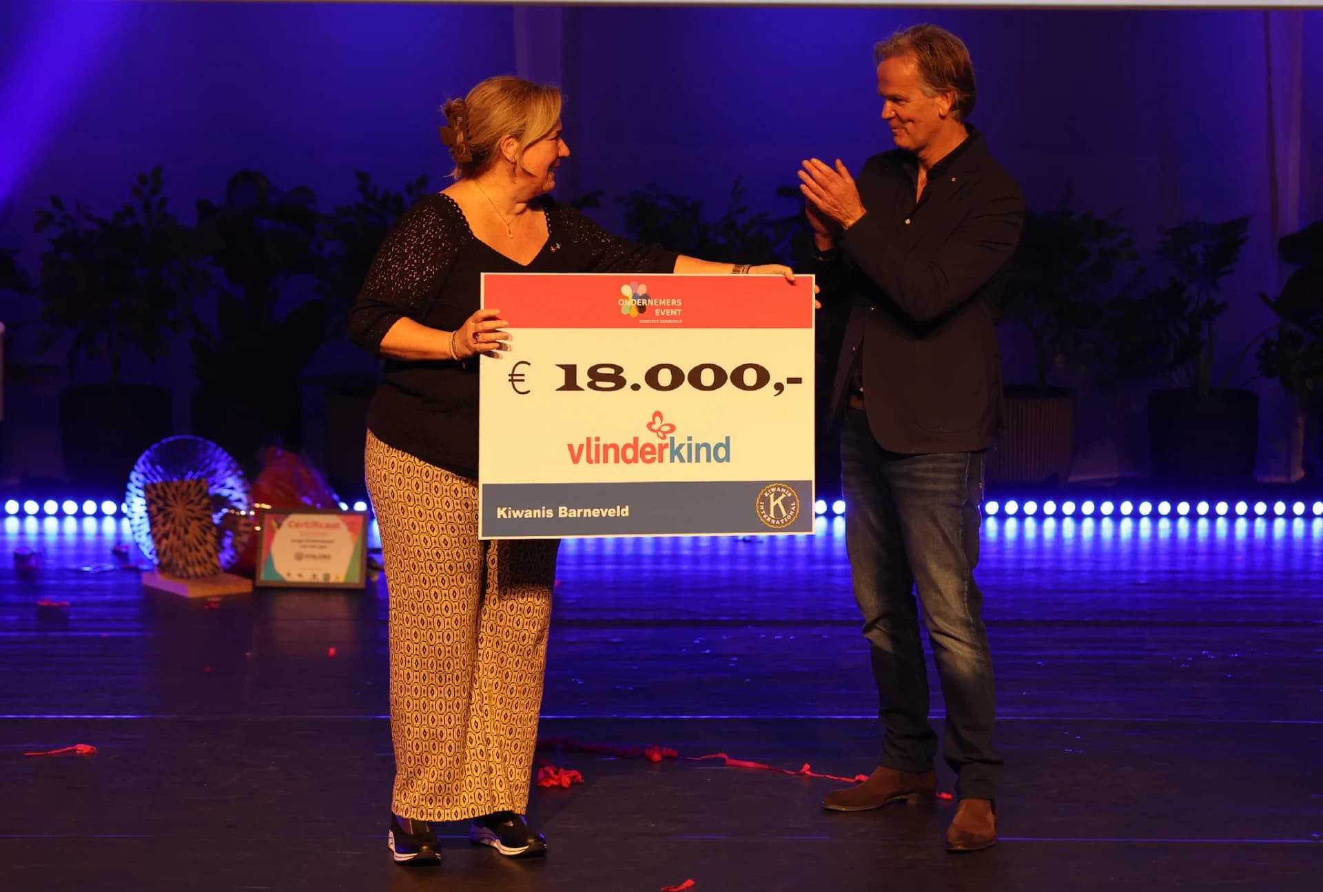 Tijdens de avond werden we ook geraakt door het verhaal van Stichting Vlinderkind. Een stichting die zich inzet voor mensen met een ernstige, ongeneeslijke huidziekte. Het interview liet zien hoe belangrijk hun werk is – voor onderzoek, voor herkenbaarheid en voor bewustwording. De volledige opbrengst van de kaartverkoop (€18.000!) ging naar dit mooie doel. Het gaf de avond een extra laag. Want ondernemen is niet alleen doelen halen, maar ook bijdragen aan een wereld die een stukje beter wordt.