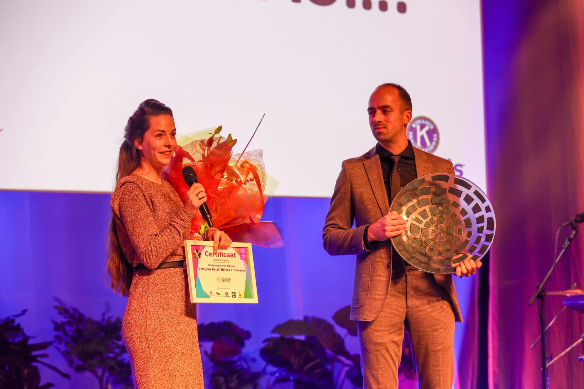 In de categorie ‘jonge ondernemer van het jaar’ won Stalero – een prachtig bedrijf in de machinebouw. ‘Ondernemer van het jaar’ werd Ravenhorst Transportoplossingen. En toen... was het onze categorie: Retail, Horeca & Toerisme. Dick, Lisa en de andere genomineerden werden het podium opgeroepen. Er volgden video’s van Elkekastopmaat, Sopia’s Coffee en Vakantiepark Beloofde Land. Drie bedrijven, drie totaal verschillende werelden, maar elk met een sterk verhaal. Toen viel het verlossende woord: “En de winnaar is... Elkekastopmaat!” Wat een moment. Wat een erkenning. De jury zei het mooi: “De unieke marktfocus en het streven naar honderd procent klanttevredenheid heeft de doorslag gegeven.” Dáár doen we het voor.