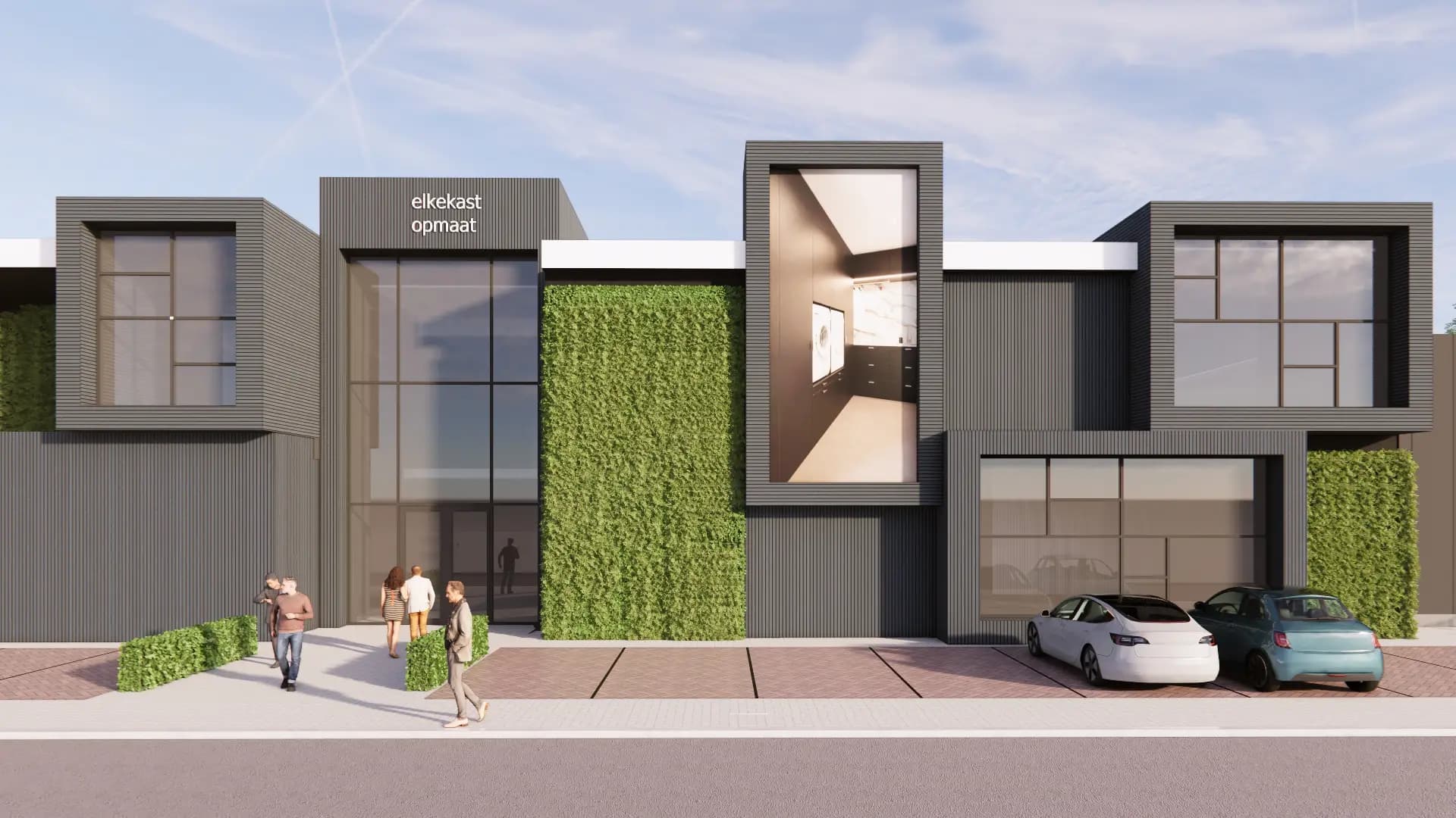 De showroom verplaatst zich naar de etage in het nieuwe deel. Het aantal vierkante meters wordt ruim vervijfvoudigd: van 200 naar maar liefst 1100 m². Die extra ruimte wordt gebruikt om klanten nog meer te inspireren. Vaak komt iemand binnen met een idee voor één kast, maar na een rondje door de showroom ontstaan er compleet nieuwe plannen. Straks kan dat nog beter, want de showroom wordt ingericht als een complete woonbeleving waarin iedereen zelf kan ontdekken wat er allemaal mogelijk is.