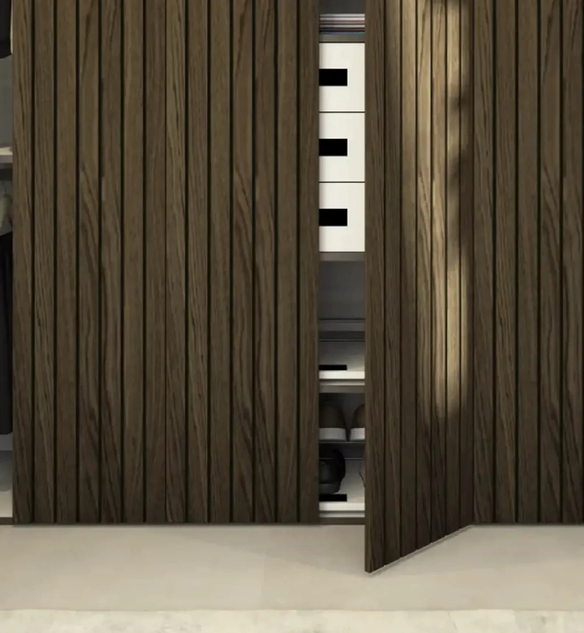 Een kledingkast hoeft niet op een kledingkast te lijken. Neem deze maatwerk eiken kledingkast: volledig ingebouwd in de wand, greeploos afgewerkt en met een lateffect waardoor het lijkt alsof u tegen een stijlvolle eiken latjeswand aankijkt. De kast verdwijnt als het ware in het interieur en dat is precies de bedoeling. Ontdekt de mogelijkheden, de materialen en de kosten van deze eikenhouten lattenkast.