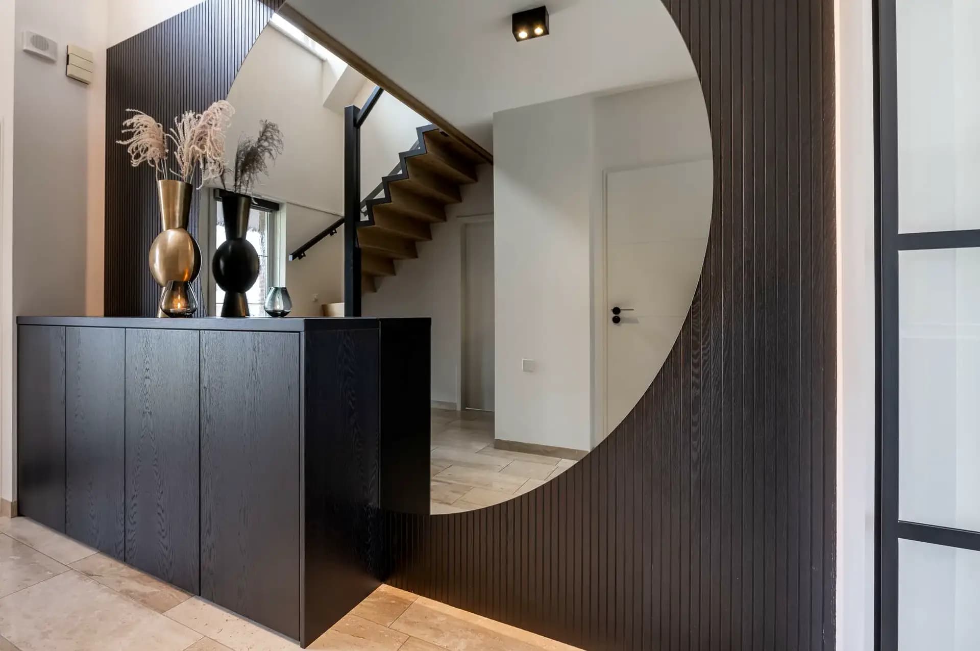 Deze gangkast is uitgevoerd in een verfrissende groene kleur die toch stijlvol blijft. De gangkast is tot aan het plafond op maat gemaakt, waardoor de ruimte optisch groter oogt. de lades en klepkast bovenin zijn perfect voor het opbergen van sjaals, handschoenen, hoeden en andere accessoires. Ontdek de mogelijkheden, de materialen en de kosten van dit halmeubel op maat.