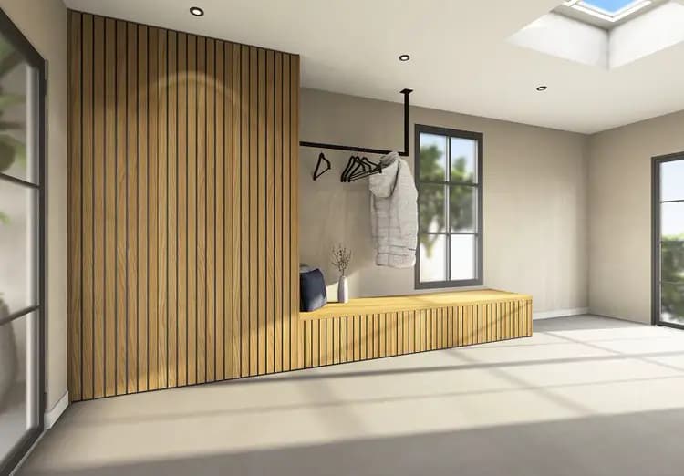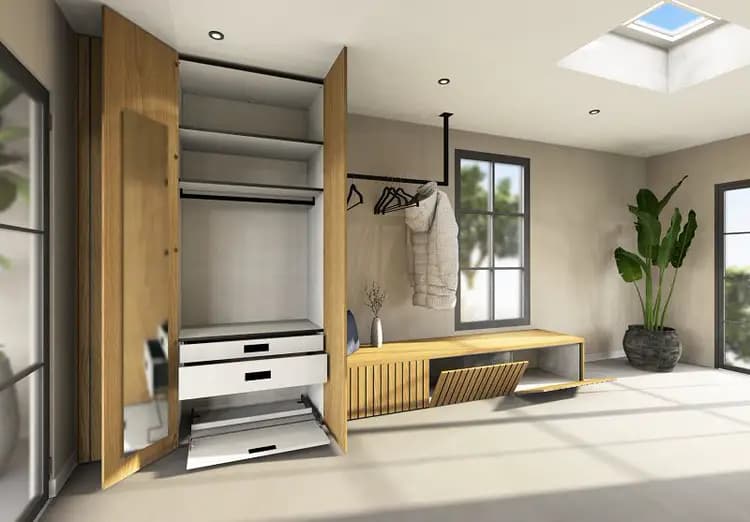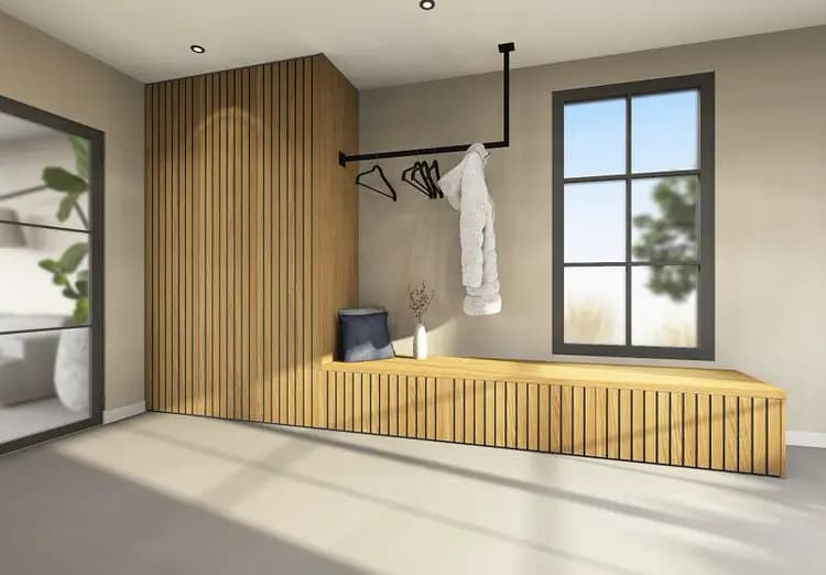 Een kledingkast hoeft niet op een kledingkast te lijken. Neem deze maatwerk eiken kledingkast: volledig ingebouwd in de wand, greeploos afgewerkt en met een lateffect waardoor het lijkt alsof u tegen een stijlvolle eiken latjeswand aankijkt. De kast verdwijnt als het ware in het interieur en dat is precies de bedoeling. Ontdekt de mogelijkheden, de materialen en de kosten van deze eikenhouten lattenkast.
