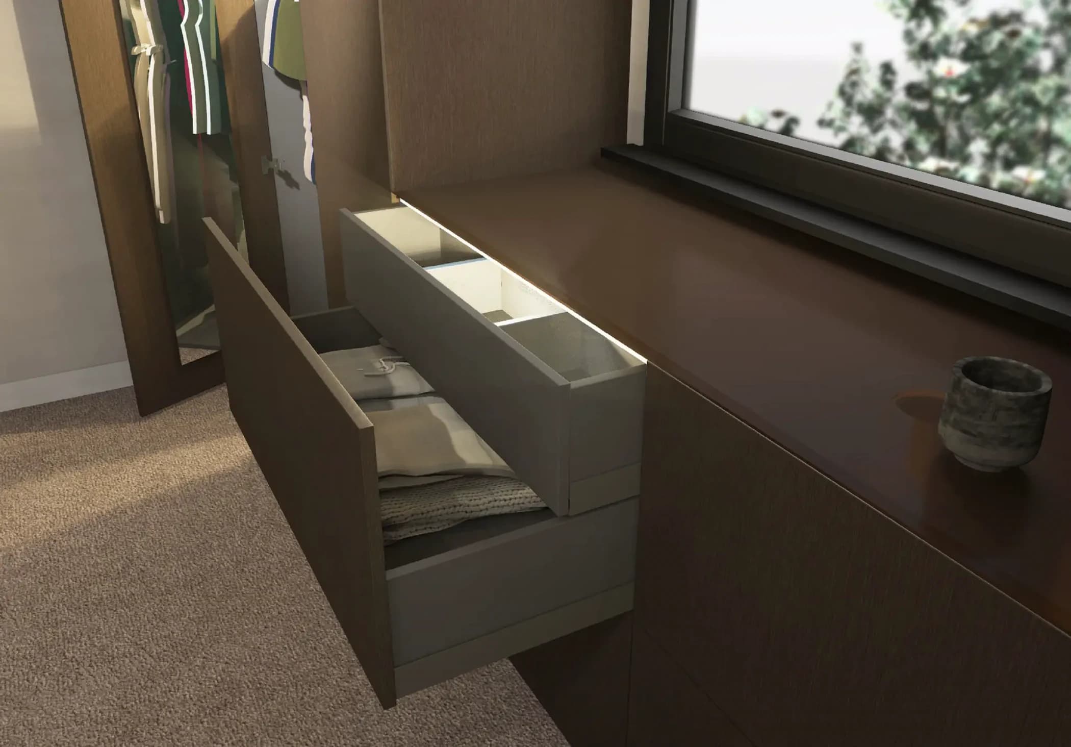 Wij fabriceren alle maatwerkmeubelen in onze eigen werkplaats. Zo kunnen wij zeer flexibel inspelen op uw wensen, en profiteert u van één centraal aanspreekpunt voor uw totale project.
