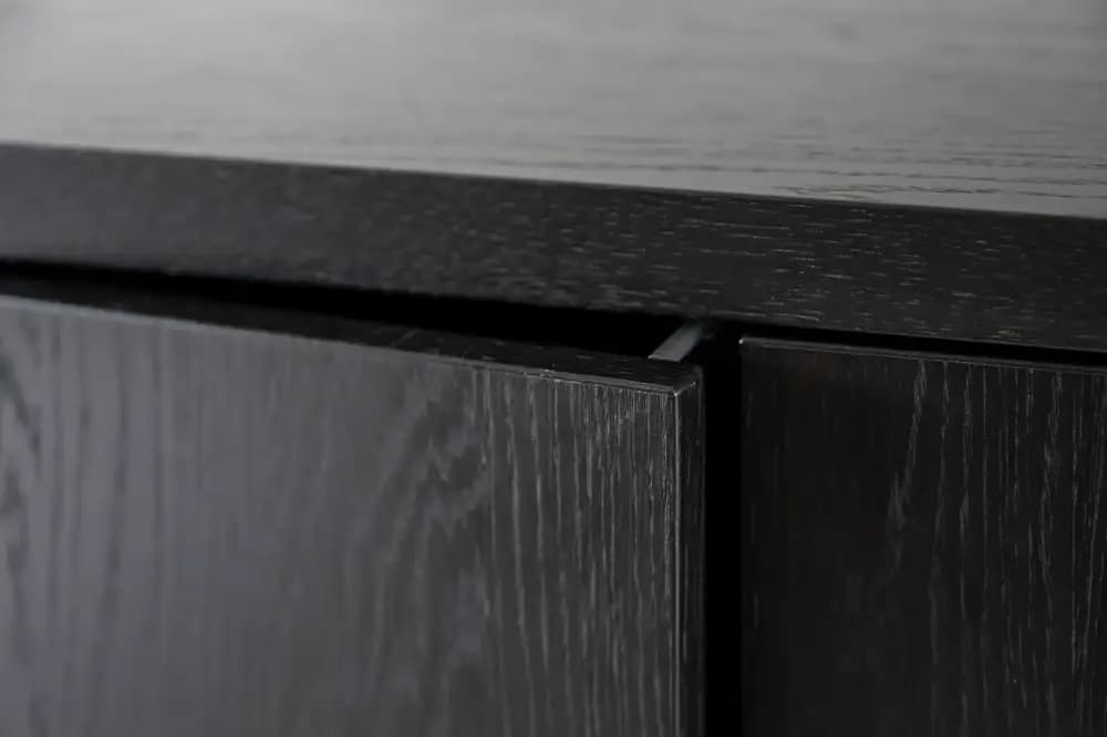 Dit zwarte dressoir is voorzien van een handig push-to-open systeem, wat zorgt voor een elegante en gebruiksvriendelijke ervaring. Het minimalistische ontwerp zonder handgrepen maakt het dressoir ideaal voor een strak, moderne ruimte. Of het nu wordt gebruikt als haardmeubel of als opslagmeubel, het dressoir biedt de perfecte balans tussen esthetiek en functionaliteit. De zwart gebeitste eiken afwerking maakt het meubel zowel een stijlvolle als praktische keuze voor elk interieur, terwijl de push-to-open technologie het gebruiksgemak aanzienlijk vergroot.