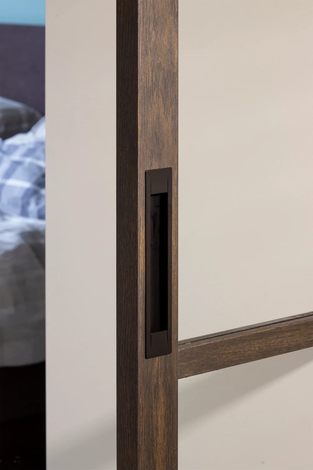 Deze op maat gemaakte inbouw kledingkast is het toonbeeld van vakmanschap en elegantie. Gevestigd in een woning in Doorn, straalt deze lattenwand kledingkast tijdloze klasse uit dankzij de afwerking van eiken fineer met een diepe charcoal oliebehandeling. De subtiele, donkere kleur die hierdoor ontstaat, voegt een modern en strak element toe aan de ruimte, zonder visueel opdringerig te zijn.