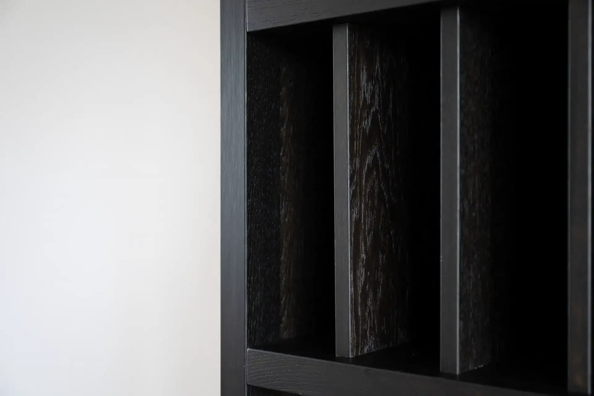 Zwart gebeitste boekenkast in eiken fineer
